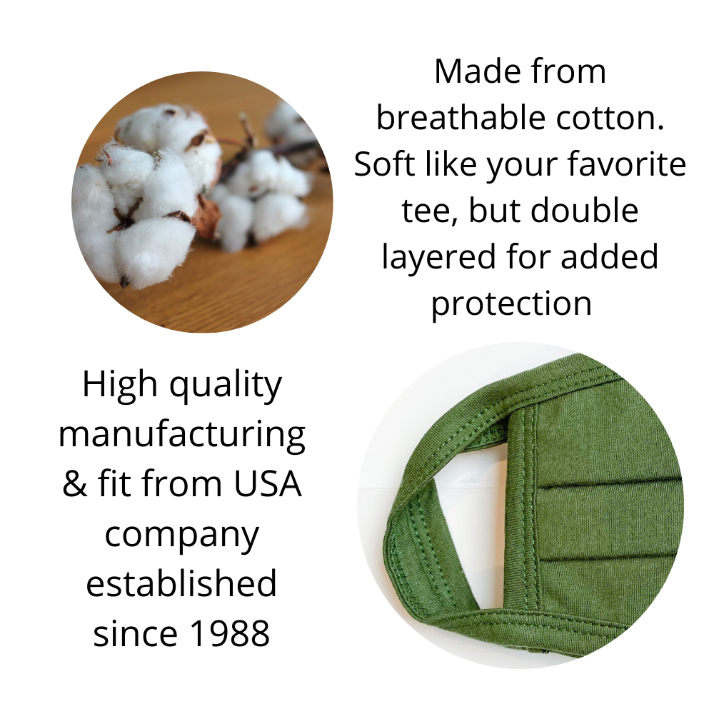 You can choose from a wide range of colors including white, navy, heather grey, olive, sky blue and black. Others offer custom colors to cater to the different preferences of customers. However, these US-made masks are in one size fits most variation.